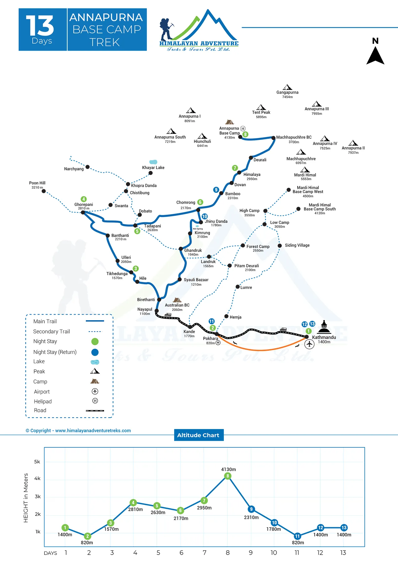 Outline Itinerary of Annapurna Base Camp Trek 13 Days