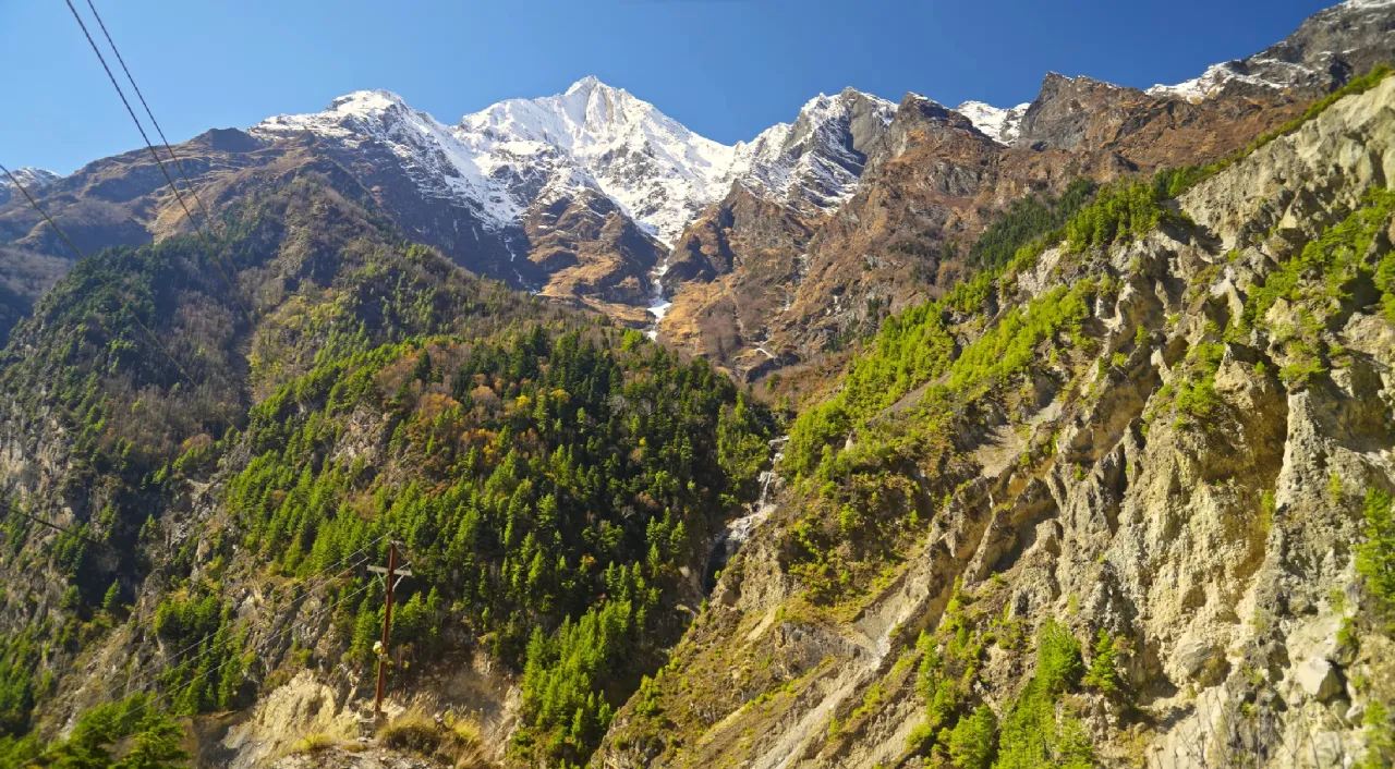 Annapurna, Langtang, Ganesh, and Lamjung Peaks can be seen from our bus windows as we proceed further into the Marshyangdi River Valley. In a short time, we will be checking into our lodge in Besisahar with an excellent view of Annapurna and Manaslu.