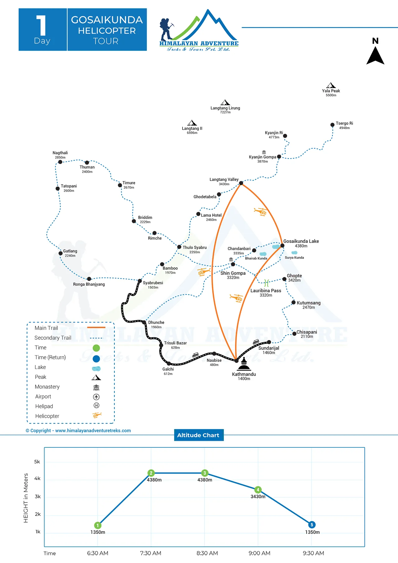 Outline Itinerary of Gosaikunda Helicopter Tour