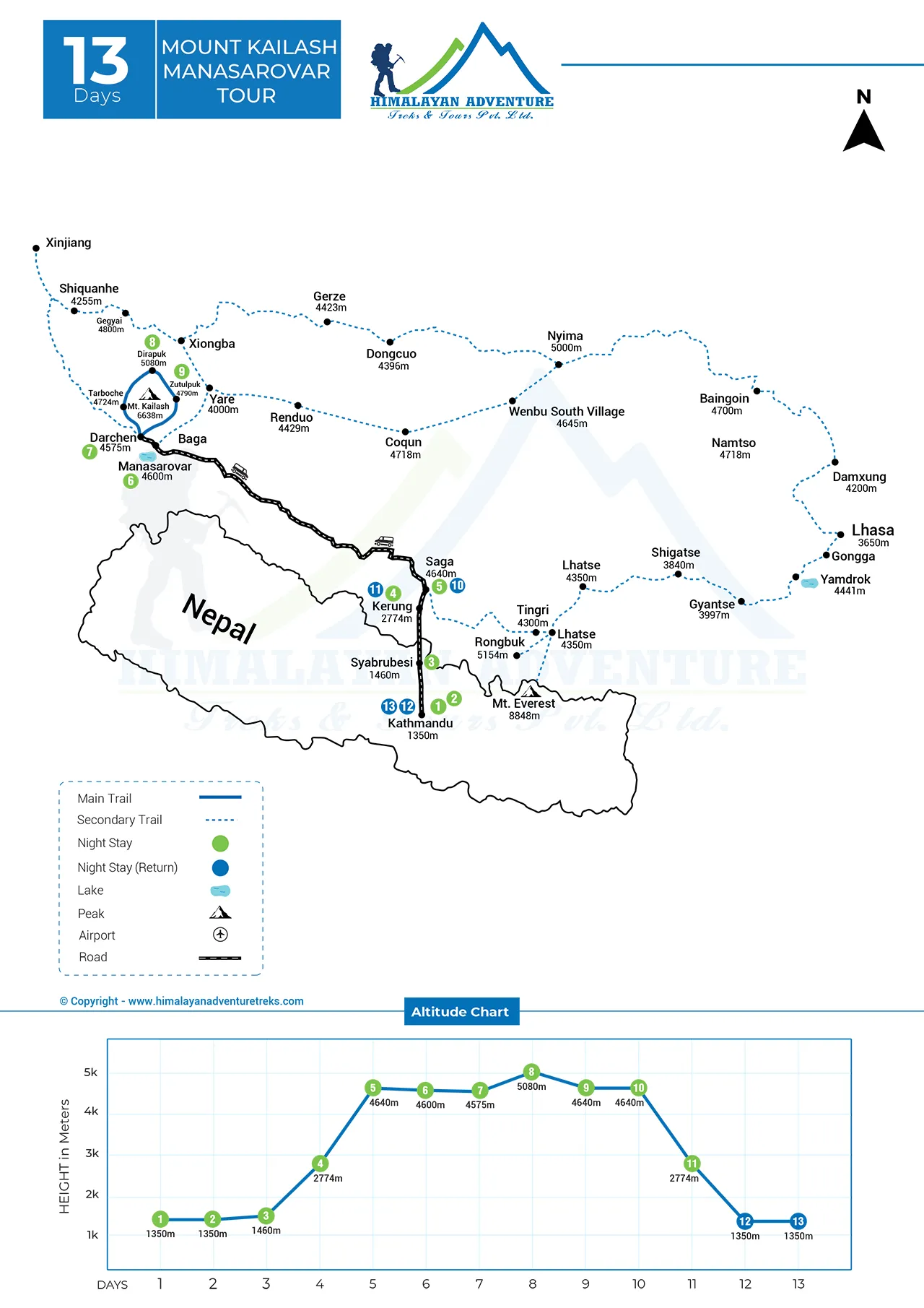 This is the most preferred route for Indian travelers. The journey starts from Kathmandu, Nepal, and includes: