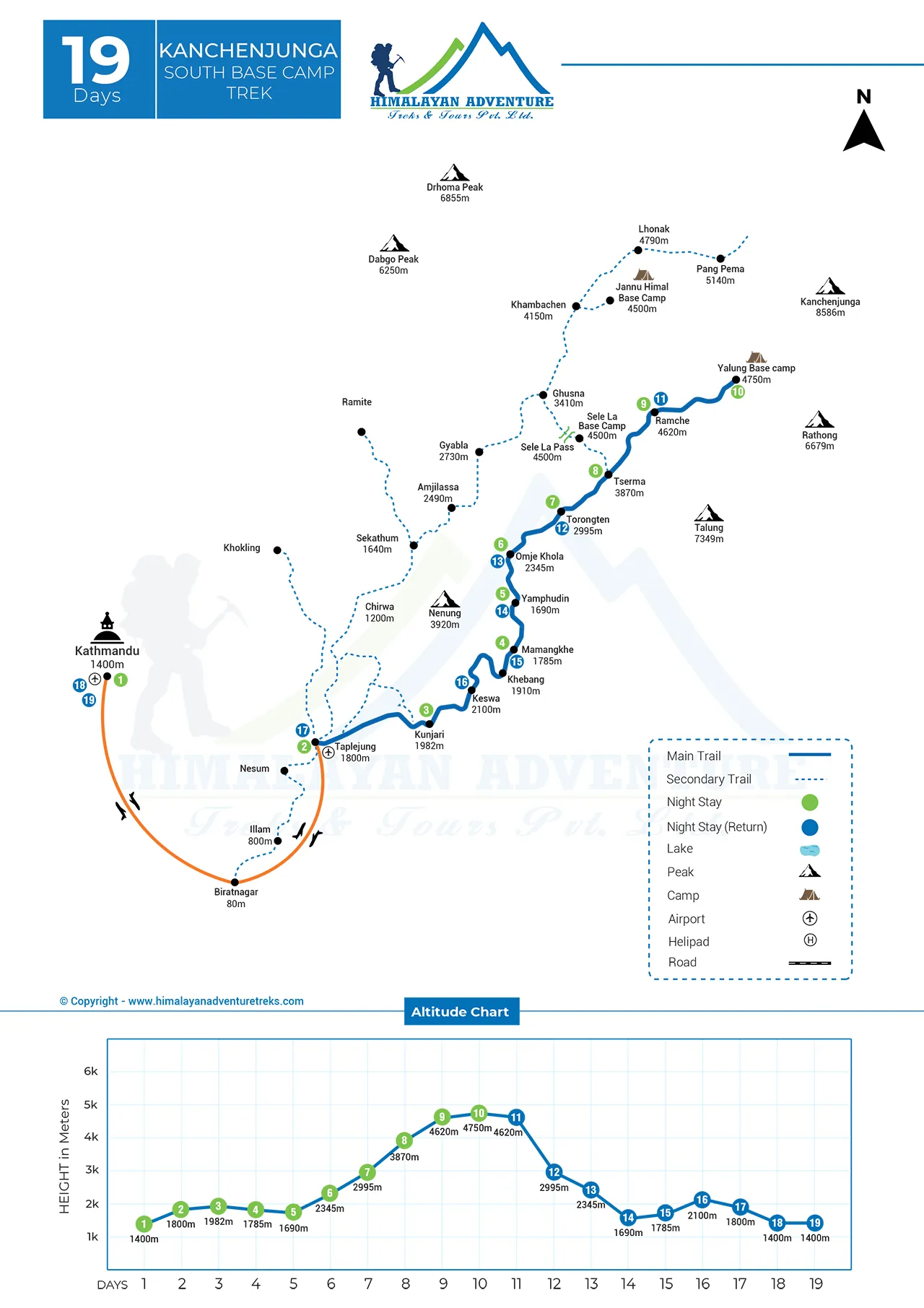 Outline Itinerary of Kanchenjunga South Base Camp Trek