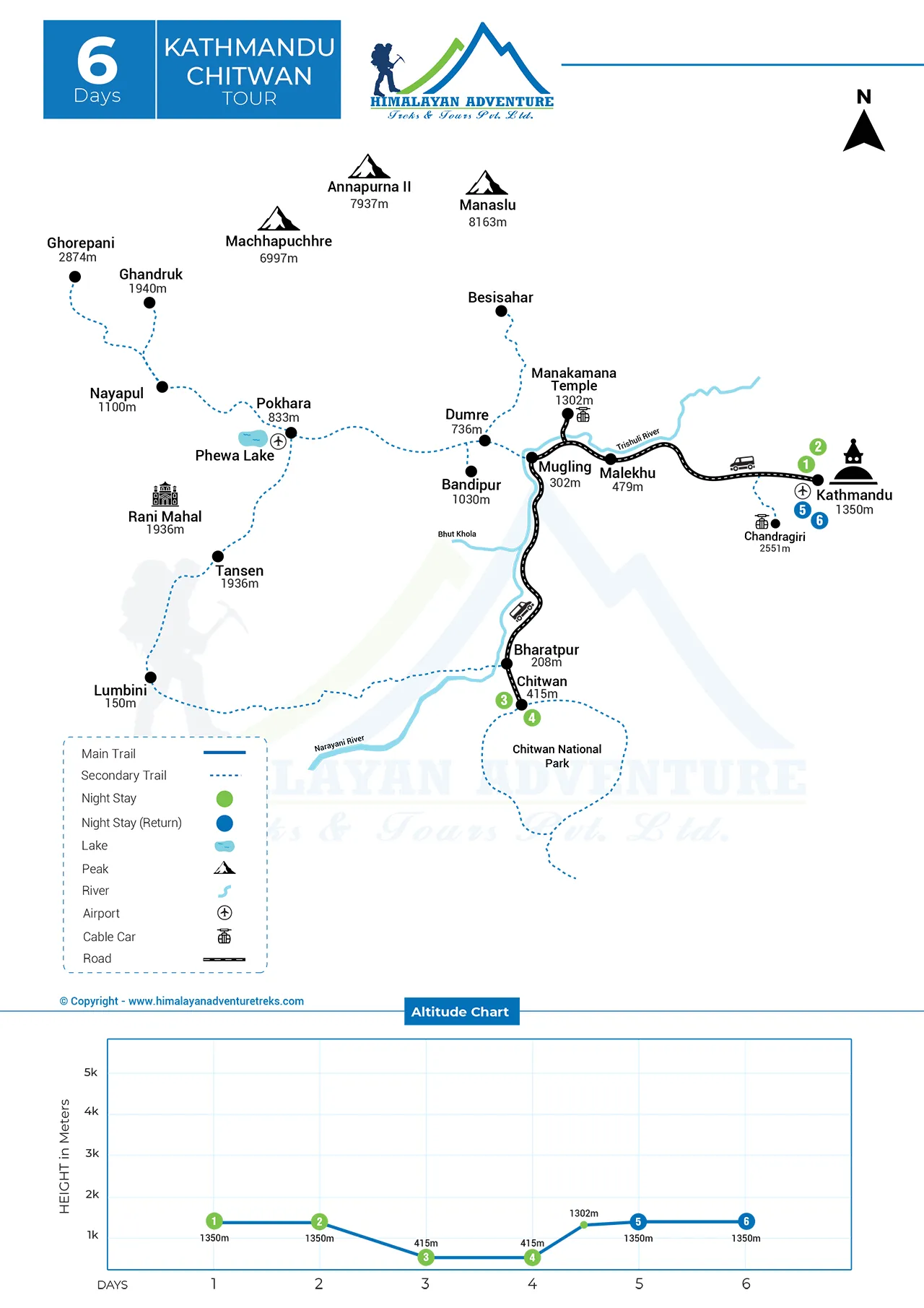 - Lunch and Dinner (Except in Chitwan National Park): Meals in Kathmandu and during travel days are not included, except for the full board meals provided in Chitwan.