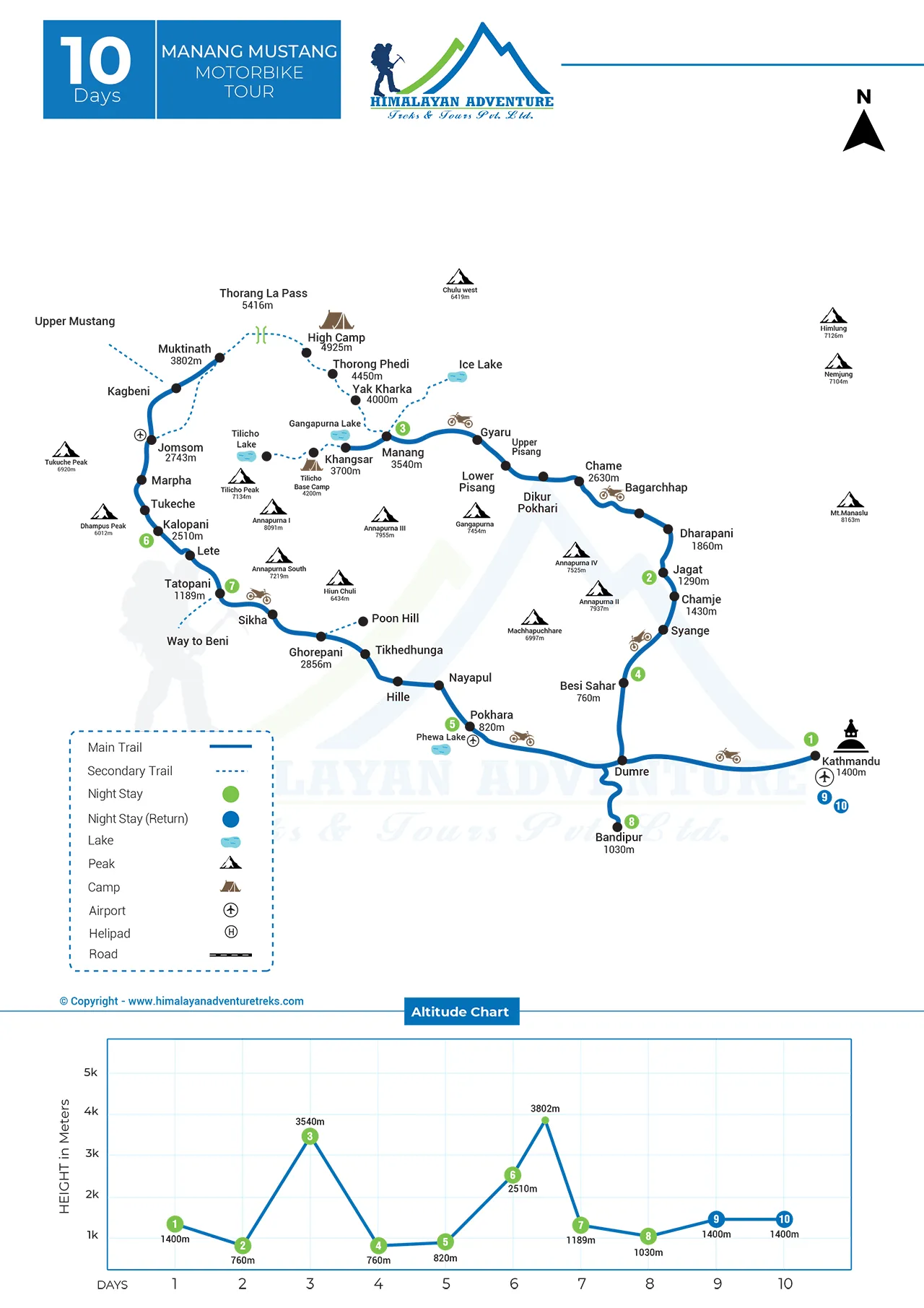 Detail itinerary of Manang Mustang Motorbike Tour -10 Days