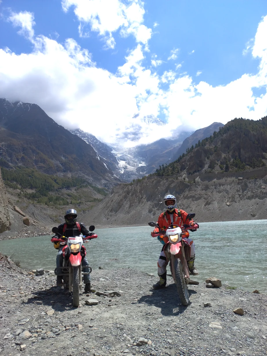 On its turquoise waters, we can see the reflection of the hanging Gangapurna glacier, Annapurna, Gangapurna, and Khangsar Kang. After a few hours of exquisite glacial experience, we will return to check on our ride and continue back towards Besisahar.