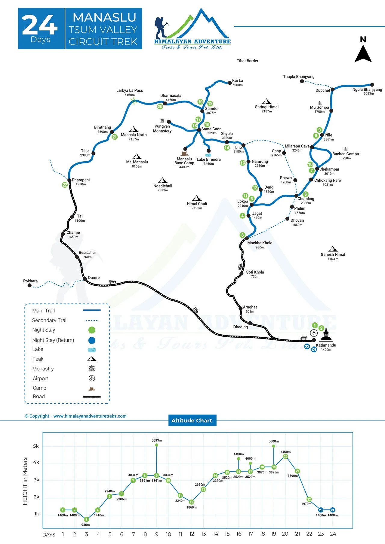 Outline Itinerary of Manaslu Tsum Valley Circuit Trek