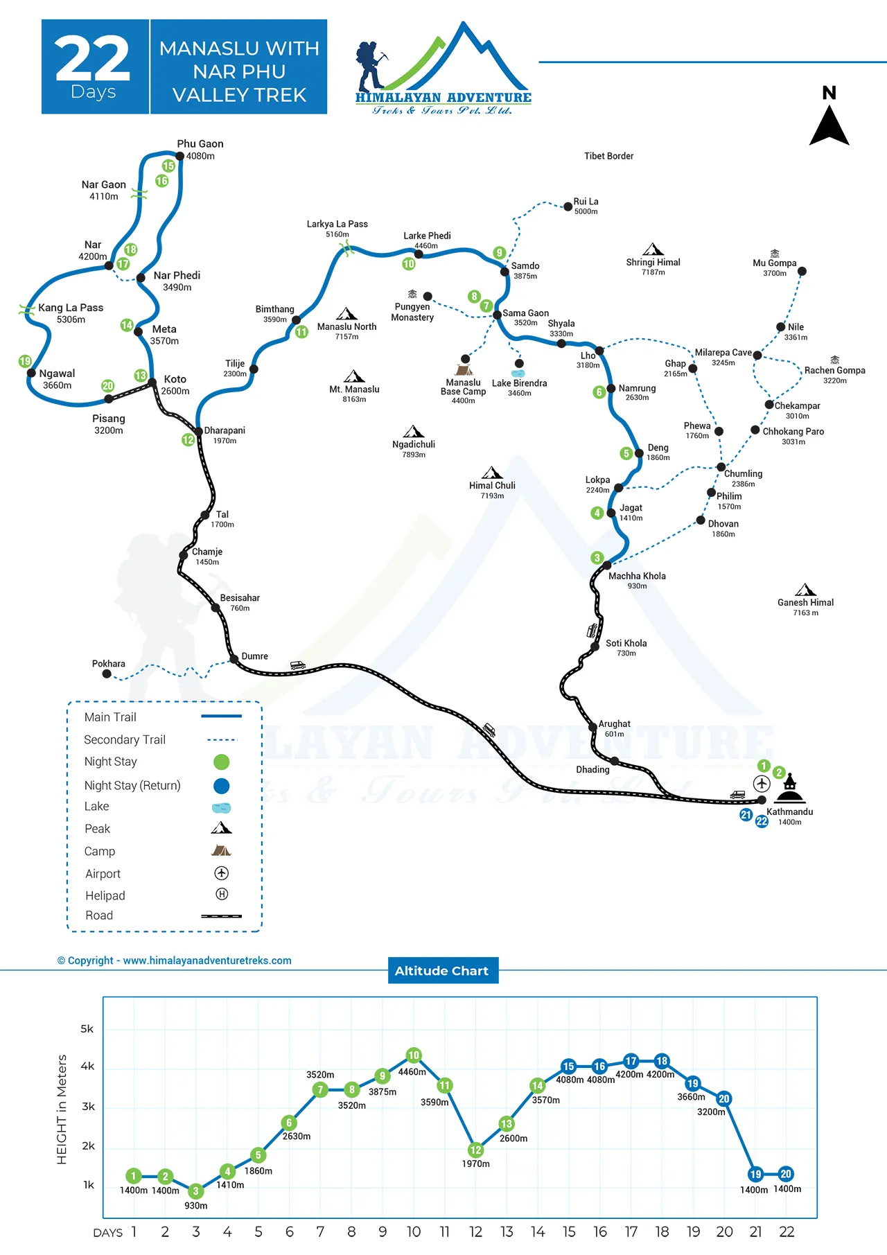 Detail itinerary of Manaslu with Nar Phu Valley Trek – 22 Days