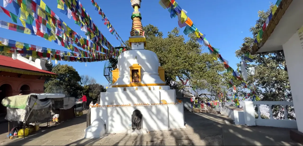 As you ascend, you will find several resting spots where you can pause to catch your breath and admire the beautiful scenery. The higher you climb, the more rewarding the views become, offering glimpses of Kathmandu Valley through the openings in the trees.