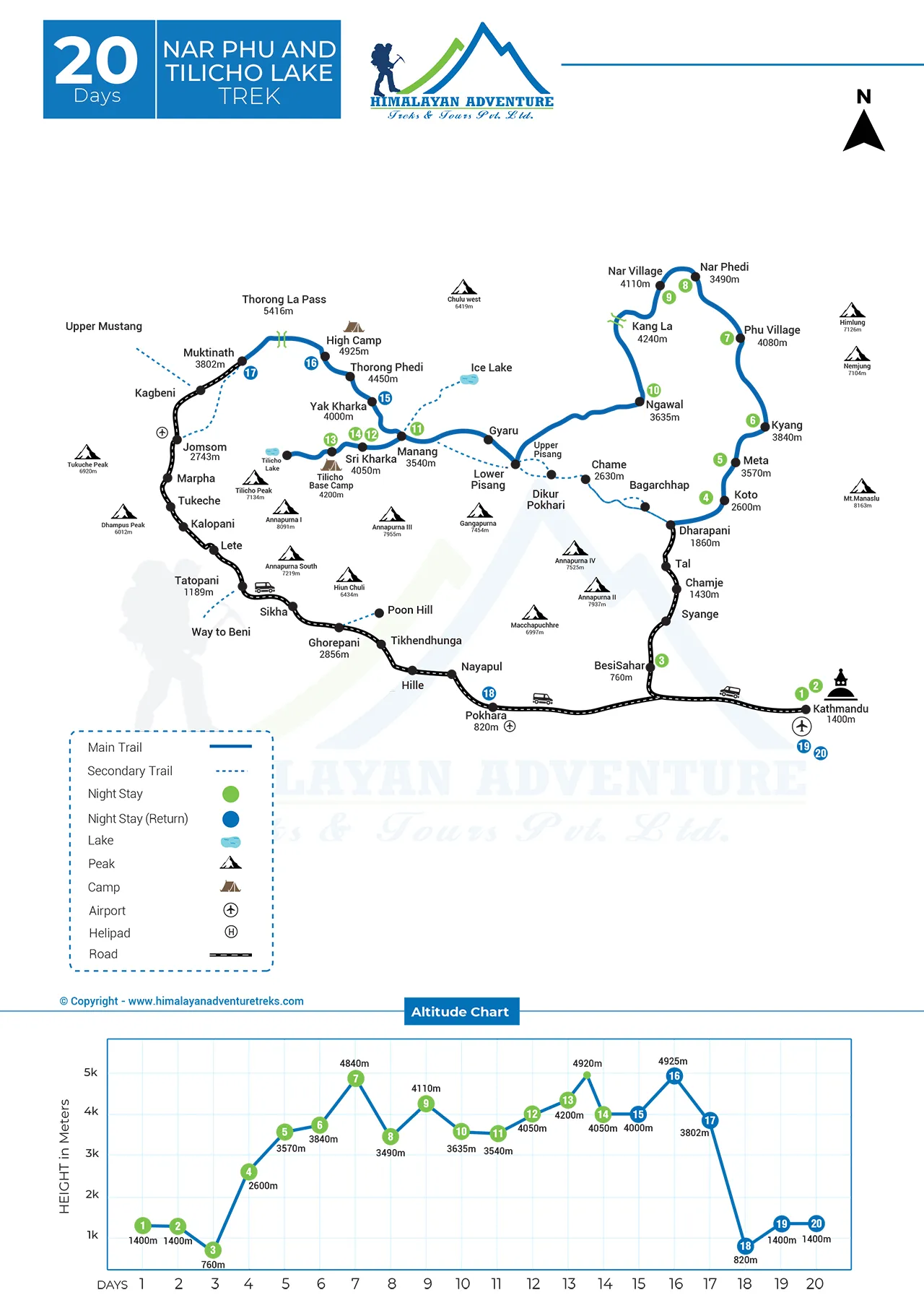 Outline Itinerary of Nar Phu and Tilicho Lake Trek