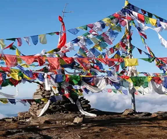 Upon arriving at the summit, you will have a view of a beautiful sunrise over the range of the Himalayas. During a clear day, it is possible to see such mountains as Everest, Lhotse and Makalu. The extensive mountain panorama makes this scene very unique and memorable.