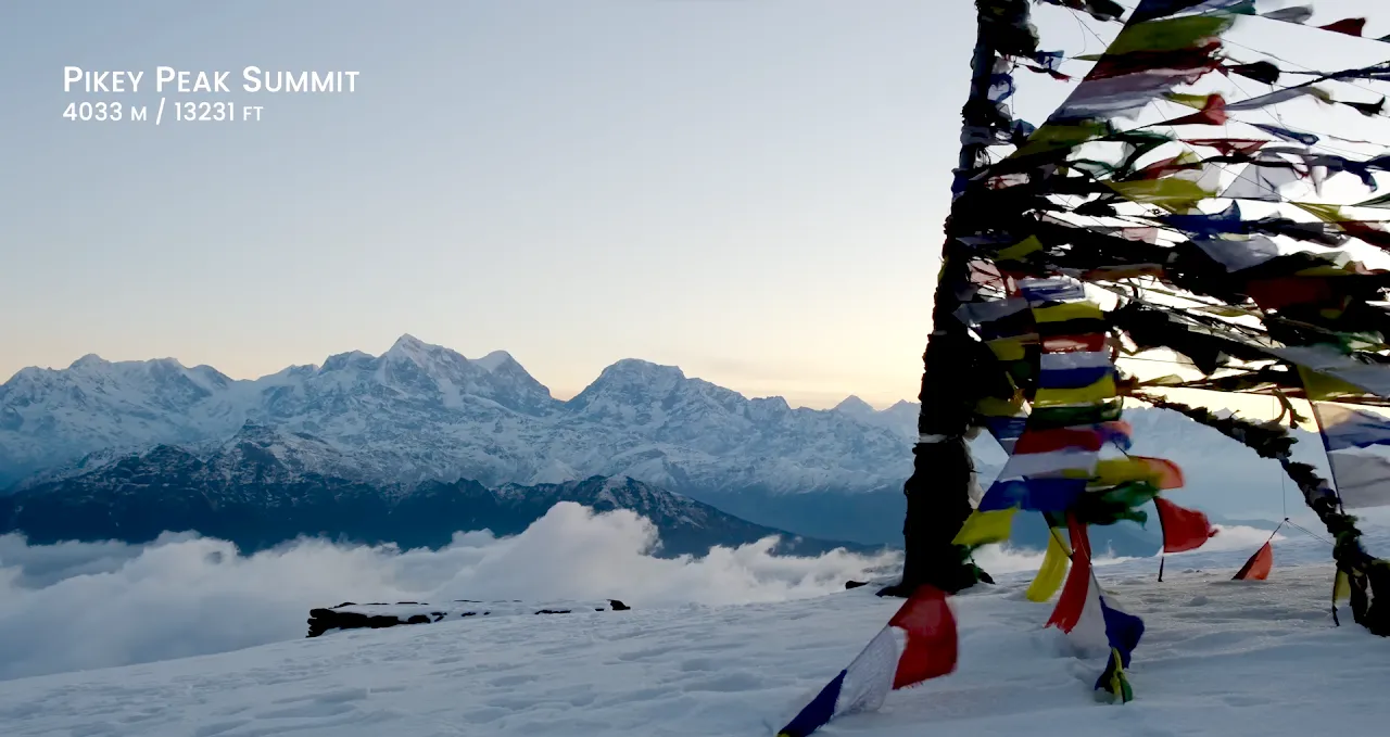 The altitude of Pikey Peak is 4065 meters (13,337 feet), offering the jaw-dropping Himalayas vistas from its viewpoint.