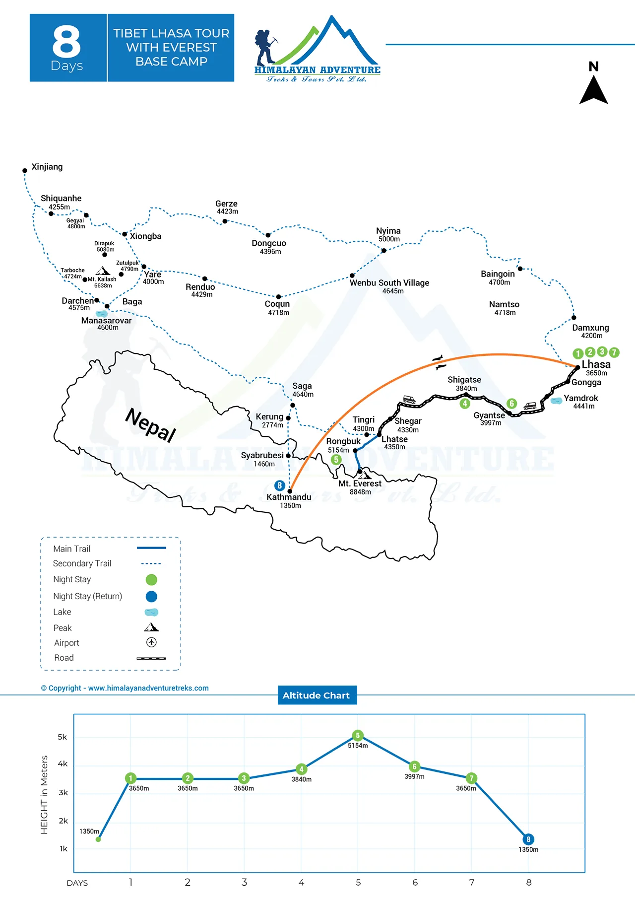 Outline Itinerary of Tibet Lhasa Tour with Everest Base Camp